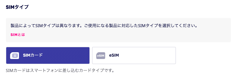 SIMタイプを選択することができます