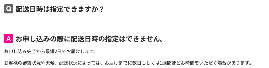 simカードは楽天モバイルをお申し込み後、最短2日で届きます。天候や審査状況によっては数日から1週間ほどかかることもあります。また配送日時は指定できません。